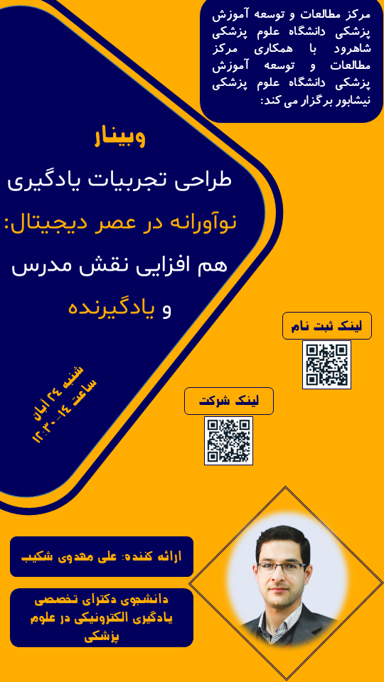 برگزاری وبینار طراحی تجربیات یادگیری نوآورانه در عصر دیجیتال: هم افزایی نقش مدرس و یادگیرنده گروه خبری : کد خبر : 163588 لینک کوتاه کلید واژه