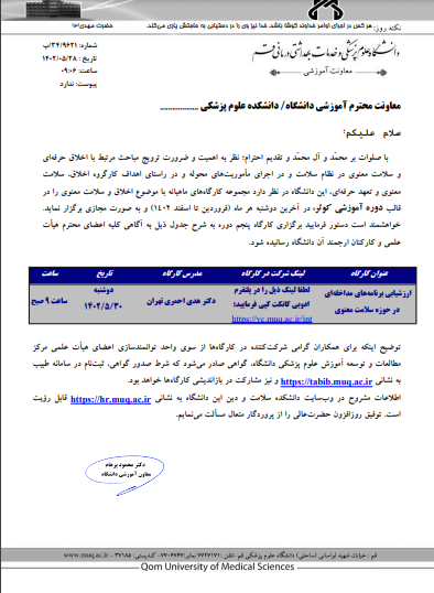 برگزاری کارگاه با موضوع ارزشیابی برنامه های مداخله ای در حوزه سلامت
