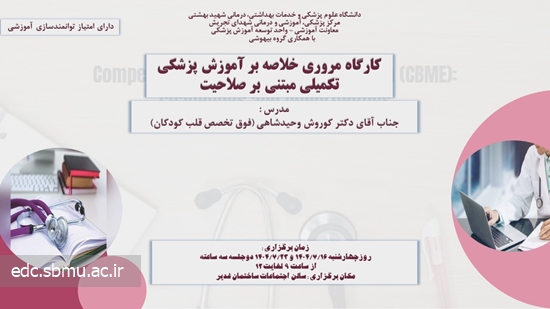 کارگاه مروری خلاصه بر آموزش پزشکی تکمیلی مبتنی بر صلاحیت روز چهارشنبه مورخ 1404/07/23 در مرکز شهدای تجریش لغو شد.