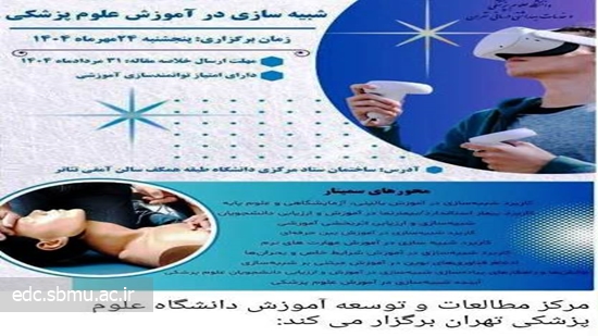 مرکز مطالعات و توسعه آموزش دانشگاه علوم پزشکی تهران خبر برگزاری سمینار سراسری شبیه سازی در آموزش علوم پزشکی را اعلام کرد.