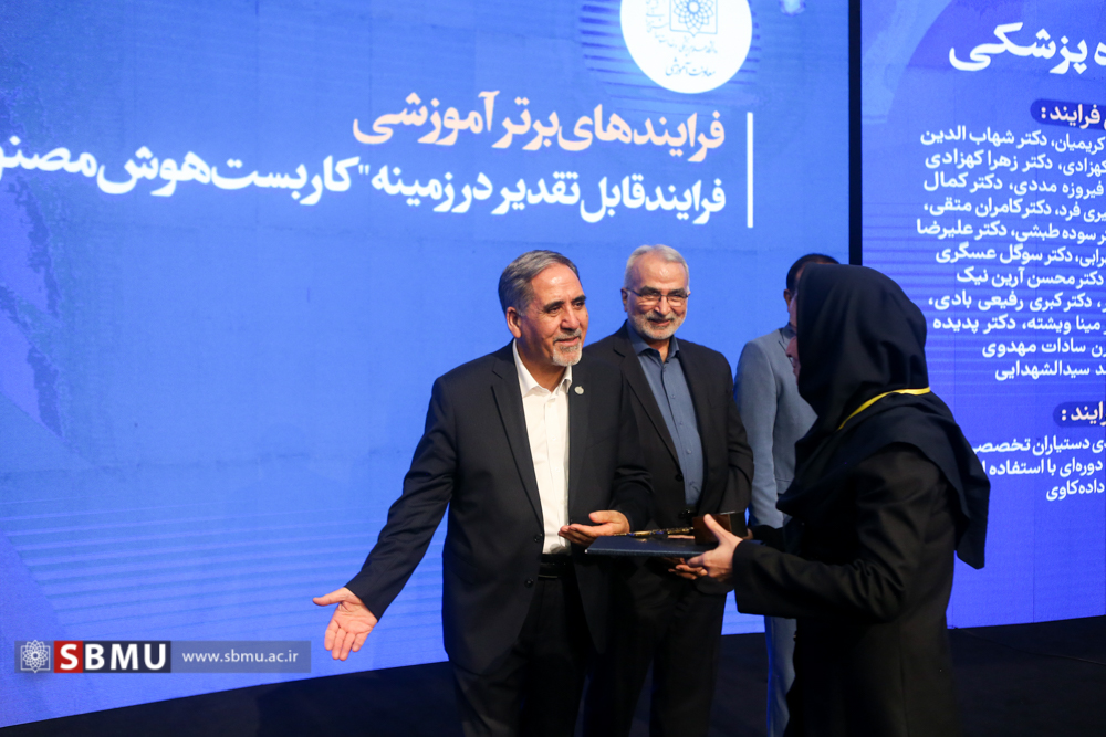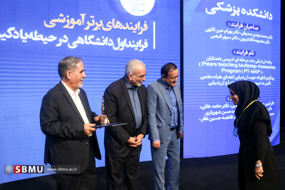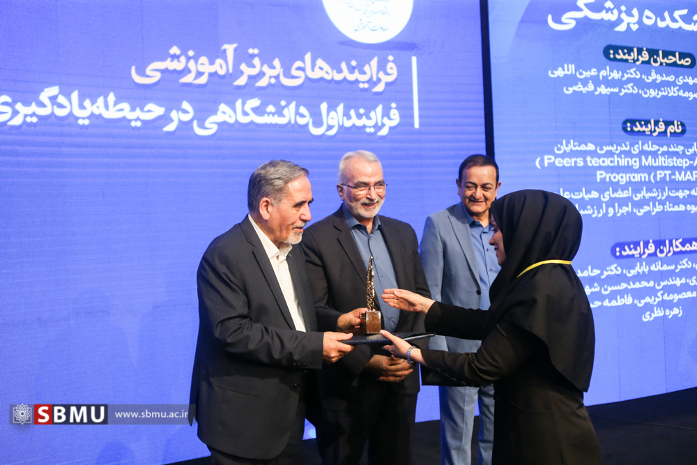 گالری تقدیر شدگان تاریخ انتشار : 1404/02/27 - 07:47 بازدید : 145 تعداد بازدید : 138 کد خبر : 156117 گروه خبری : اخبار داخلی,گالری تعداد نظرات : 0 در نوزدهمین جشنواره آموزشی دانشگاه علوم پزشکی شهید بهشتی که امروز سهشنبه 23 اردیبهشتماه در سالن امام خمینی(ره) برگزار شد، برترینهای حوزه آموزش معرفی و از آنها تقدیر شد.