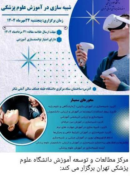 مرکز مطالعات و توسعه آموزش دانشگاه علوم پزشکی تهران خبر برگزاری سمینار سراسری شبیه سازی در آموزش علوم پزشکی را اعلام کرد.